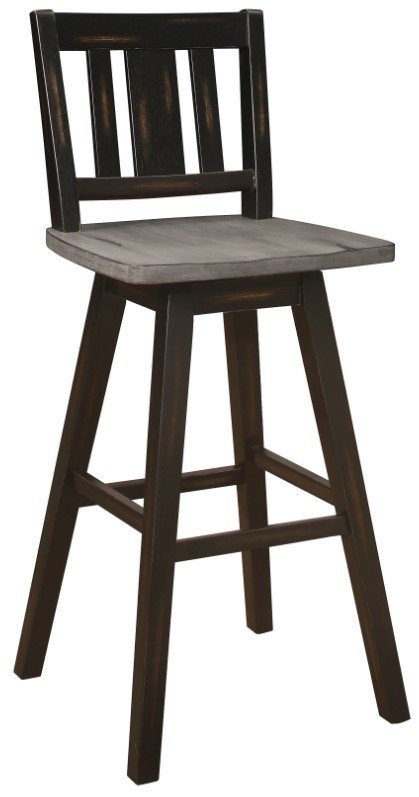 Creating a subtle rustic look for your dining space is the Amsonia Collection. A black sand-through finish graces the solid rubberwood 29-inch swivel vertical slat-back counter height chair, highlighting the veneer.Read More