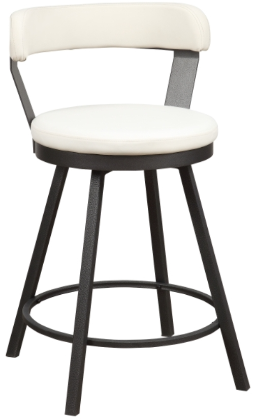 Perfectly styled for your casual dining space is the Appert Collection. This 24-inch counter height chair offering features a dark gray metal base that serves to support the white faux leather round swivel seat.Read More