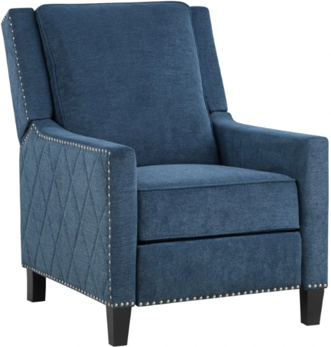 With a reclining mechanism that is engaged with your push, settling into the Banks Collection is done so with ease. The tailored, modern profile of the push back reclining chair is covered in blue textured fabric upholstery, its neutral hue a versatile option to pair with your home’s décor.Read More