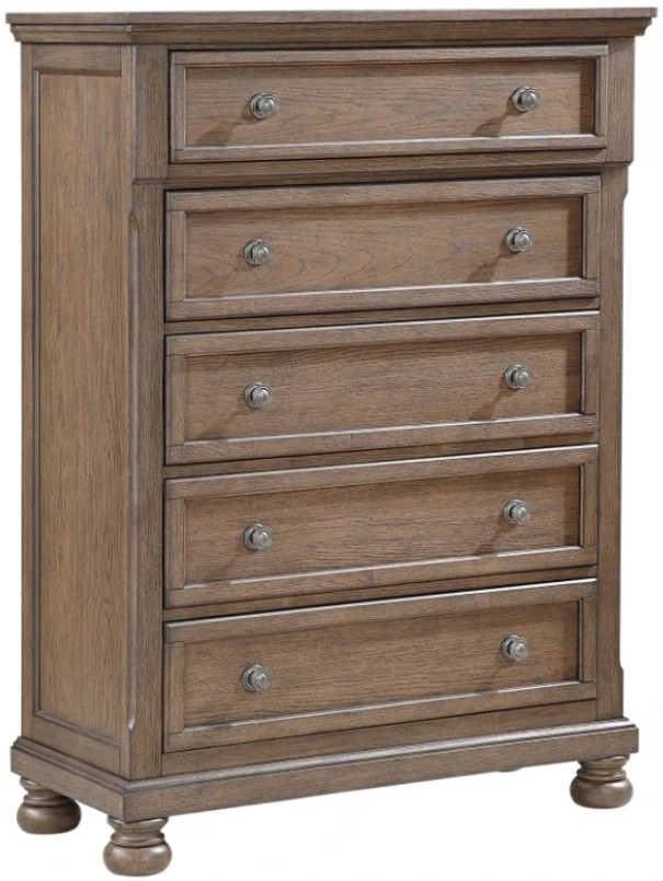 Maximize your bedroom's storage with this elegantly proportioned 5-drawer chest, featuring a timeless wire-brushed antique brown finish that adds classic charm to any decor. Constructed from a durable blend of birch veneer, wood, and engineered wood, this chest is built for lasting quality and beauty.Read More