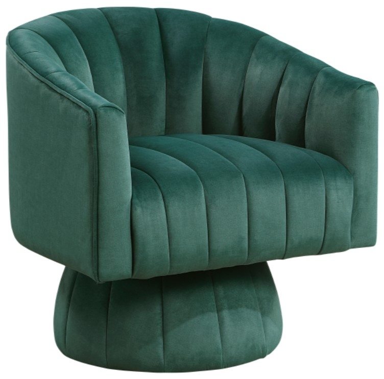 Immerse yourself in luxurious comfort and style with the swivel barrel chair. Upholstered in a sumptuously soft velvet fabric, this statement piece boasts a chic barrel back design with elegant channel stitching, adding a touch of sophisticated texture to any living room, bedroom, or reading nook.Read More