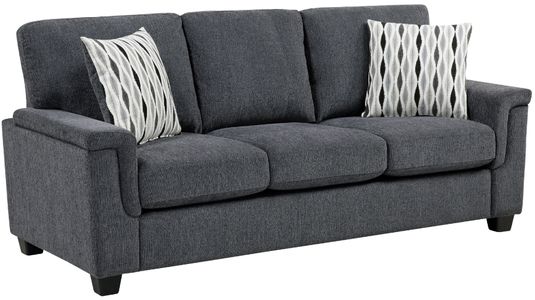 The soft chenille fabric upholstery adds a touch of warm elegance, while the reversible back and seat cushions ensure longevity and easy maintenance. Removable cushion covers with zippers make cleaning a breeze, and the exposed feet with a black faux wood finish add a modern touch. Complete with two decorative pillows, this sofa enhances both comfort and style. With a robust 300lbs weight capacity per seat, this sofa is designed for lasting comfort and durability. Assembly is required, but the transformation of your space into a welcoming retreat is well worth it.