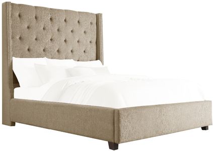 The stately profile of the Fairborn Collection will lend an air of understated elegance to your bedroom. The full mansion headboard features nailhead accent and button tufting creating a modern traditional look that defines your personal style. Brown fabric covers the bed, providing neutral complement to your decorative bedding.Read More