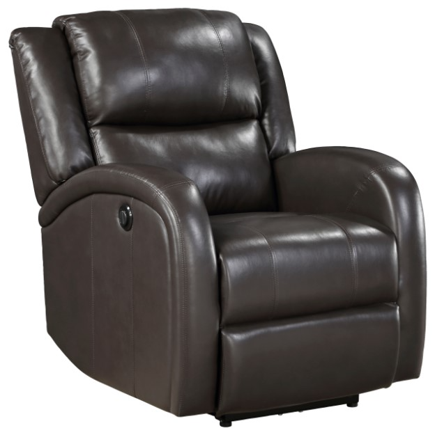 The contoured arms and plush seating of the Foxcroft collection are covered in brown faux leather upholstery, its softness taking your comfort to the next level. When the one-touch power reclining mechanism is activated, you are taken from a seated to reclined position in one easy movement.Read More