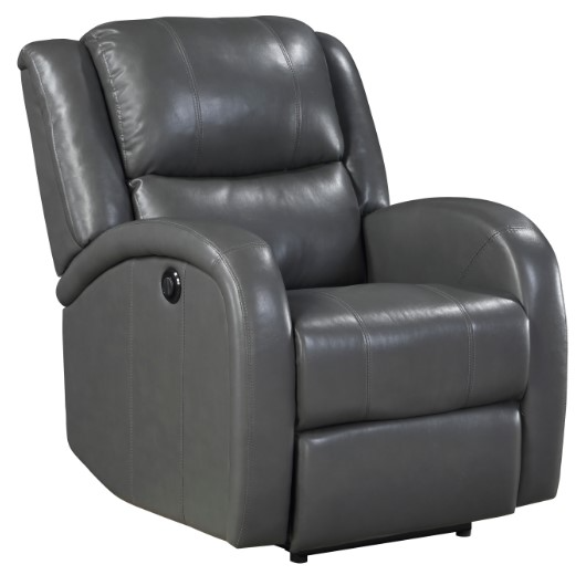 The contoured arms and plush seating of the Foxcroft Collection are covered in gray faux leather upholstery, its softness taking your comfort to the next level. When the one-touch power reclining mechanism is activated, you are taken from a seated to reclined position in one easy movement.Read More
