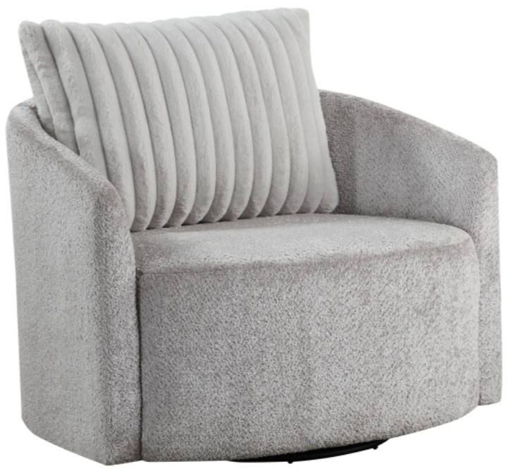Enhance your living space with this spacious modern Francine Swivel Chair upholstered in soft gray chenille fabric, perfectly complemented by a plush corduroy back pillow for added texture and comfort.Read More