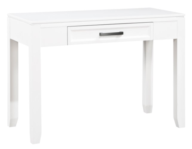 The Garretson Collection blends transitional lines with rustic styling to create an elegant addition for your bedroom. The desk features a white finish, and a centrally located single drawer with a black-finished metal bar pull.Read More