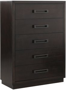 The striking profile of the Larchmont Collection is an intersection of texture, material and style. Prominent horizontal metal hardware is mounted on each drawer front, and is finished to complement the tone of the charcoal finish over ash veneer.Read More
