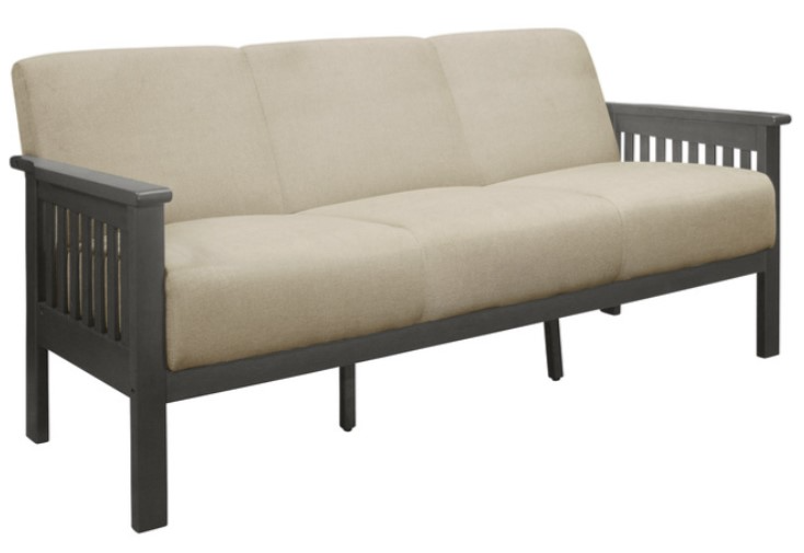 Designed with inspiration from the Arts & Crafts movement, the Lewiston collection will be a classic addition to your home’s décor. The sofa's transitionally styled legs and vertical slat-supported wood arms are finished in an antique gray, providing complementing contrast to the brown linen-like fabric covering.Read More