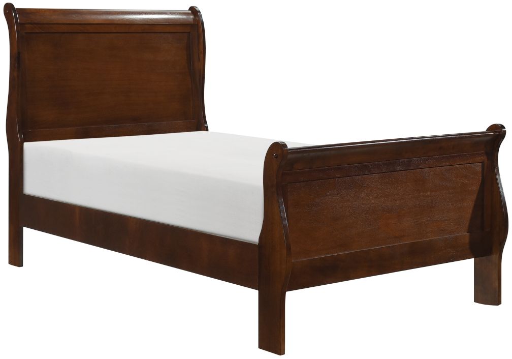 Traditional in design and modest in scale, the elegant Mayville collection takes its design inspiration from the classic Louis Philippe styling. Burnished brown cherry finish lends timeless appeal to the traditional twin sleigh bed. Additional colors include; black, white and stained gray. Coordinating case pieces are also available.Read More