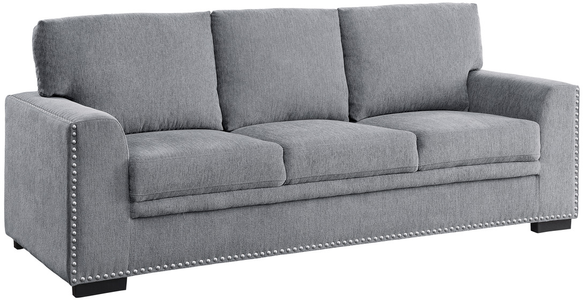 A perfect addition to your casual living room, the Morelia Collection’s decoratively flexible style allows for placement in myriad living room settings. Covered with gray chenille, the profile of this sofa is defined by its nailhead trim, loose back cushions and track-style arms, creating a look that is perfect for your home’s living room.