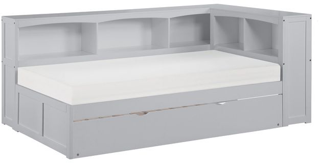 Maximizing sleep space is achieved with the stylish Orion Collection. This transitional twin corner bookcase bed is featured in a gray finish making it an appropriate choice for a number of youth bedroom settings. The bookcase headboard allows for convenient storage within arm’s reach.Read More