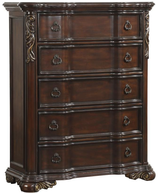 Grandly styled for the traditional home is the Royal Highlands Collection. Prominent decorative scrolling adorns the headboard while heavier, carved scrolling accents the pilasters and feet of each piece in the collection.Read More