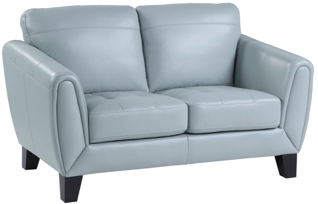 The subtle retro look of the Spivey collection will pair with modern aesthetic of your home’s décor, creating a classically cool look that is sure to turn heads. The streamlined profile of the love seat is covered in an aqua hued top grain leather.Read More