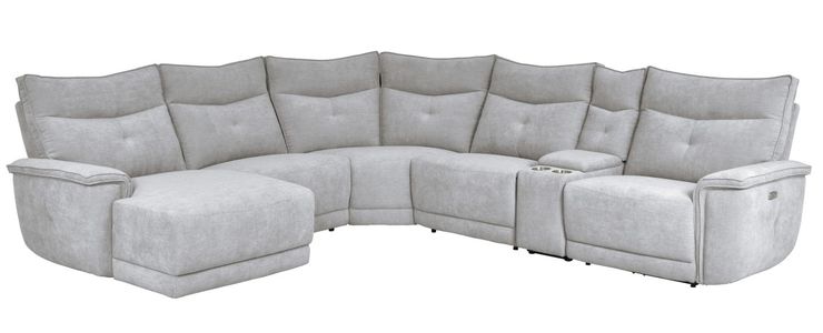 Providing ample seating in modern form the Tesoro Collection. The classic sectional shape is book-ended by optional USB port enhanced end power recliners or end chaise units – allowing for maximum versatility when planning the layout of your living room. Mist gray fabric provides a neutral palette for your decorative preferences. The power reclining mechanism of the reclining ends and armless chair brings you to your desired position with a touch of the button. Providing additional support is the USB enhanced ports, console unit - with storage and stainless steel cupholders - and the power operated headrest that allows you to further customize your comfort experience.