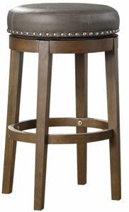 Transitional styling paired with versatility of selection makes the Westby collection a perfect addition to your home’s casual dining spaces. The round, swivel seat, pub height stool is presented at 29-inches. The brown finished wood legs complement the gray faux leather seat which features nailhead trim that further defines the stool’s round profile.Read More