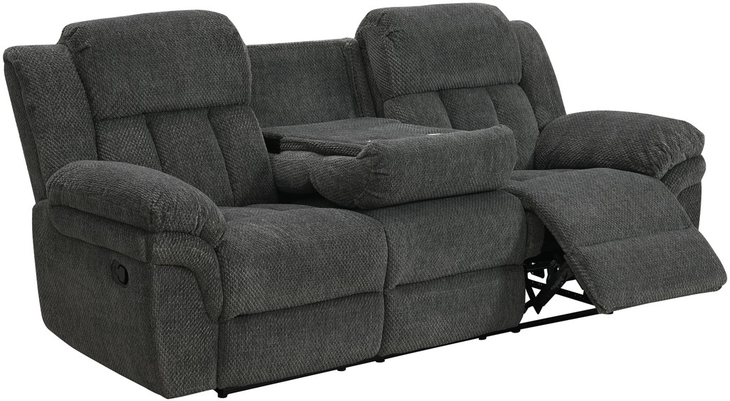 Unwind in style with this manual reclining sofa. Wrapped in smooth gray fabric, this recliner offers smooth reclining and gliding movement. Enjoy more relaxing and comfortable experience with this furniture in style.Read More