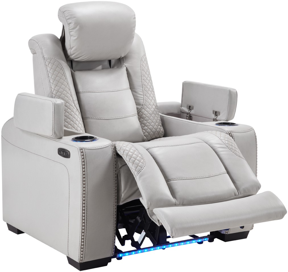 Relax like never before in this power recliner. With its sleek smoke upholstery, power recline, and adjustable power headrest, it’s your personal comfort zone. Built-in cupholders, hidden storage, and ambient base lighting add modern function to luxury lounging.Read More